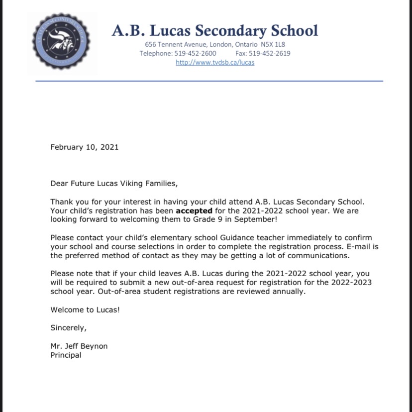 I got accepted as out-of-zone to my first choice high school. Lucas! I am so happy!