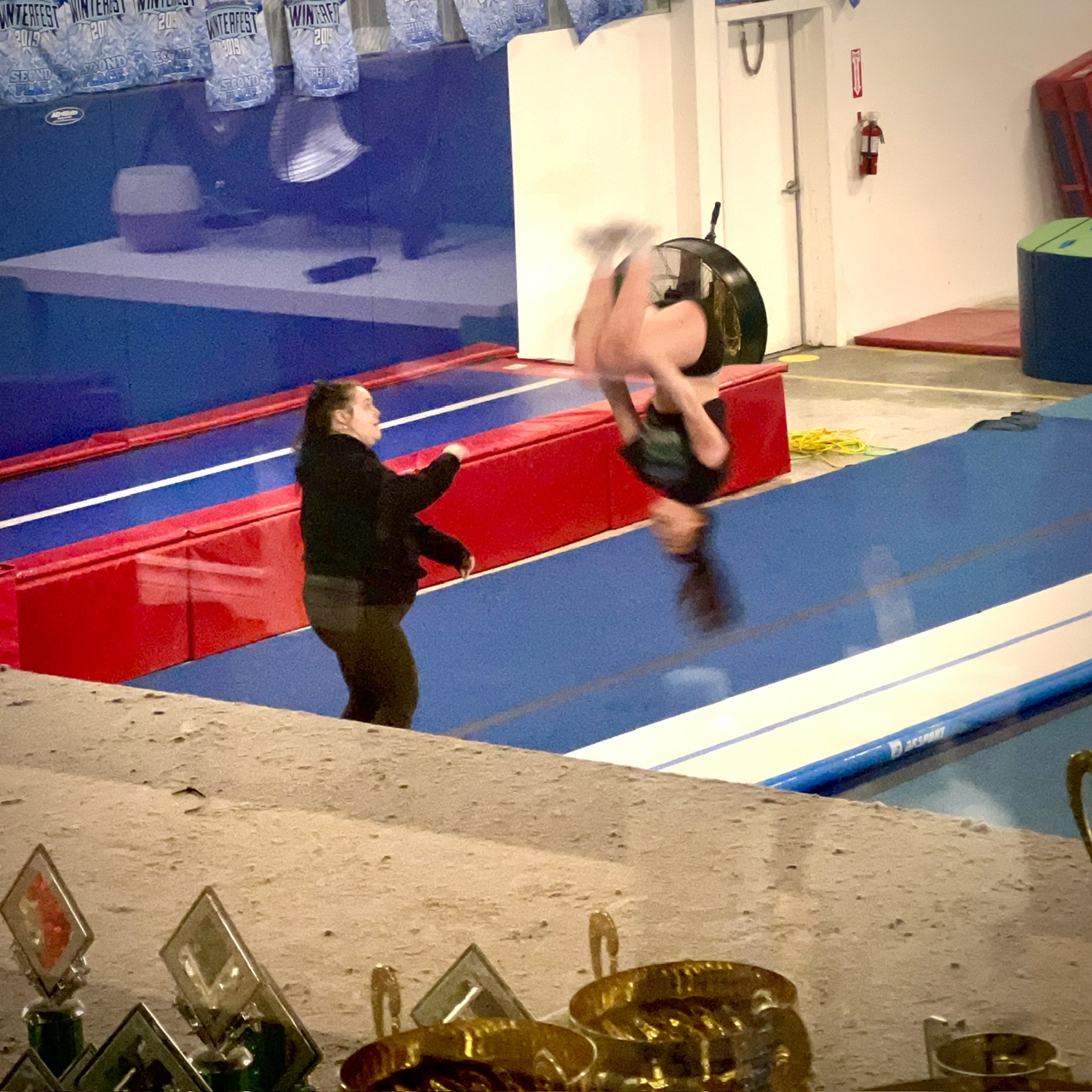 The other big piece of news this week is that Emelia finally exercised the roundoff-back-tuck demons. She had lost her back tuck after a fall at gymnastics and then also having issues with her back. She has been working hard at this level-up skill for two seasons. Really wanting to move up next season, she has been taking every chance with privates (lessons) she gets. And the last few she has done with Coach Jenna who used to coach Emelia at Gymnastics and has also moved over to cheer. So, it was perfect that yesterday in a private with Jenna, Emelia finally was able to do it unspotted and on her own!! And not just once but multiple times!