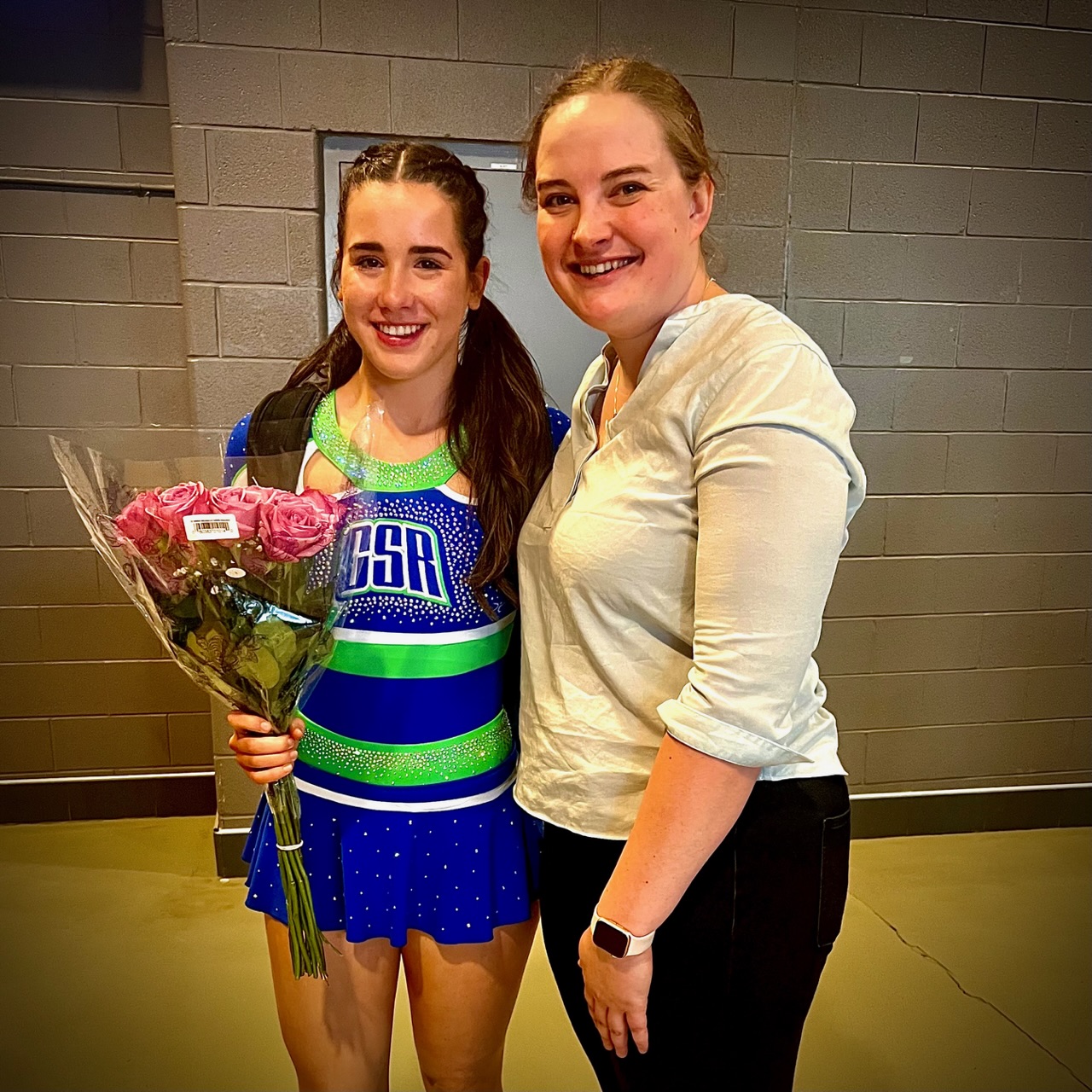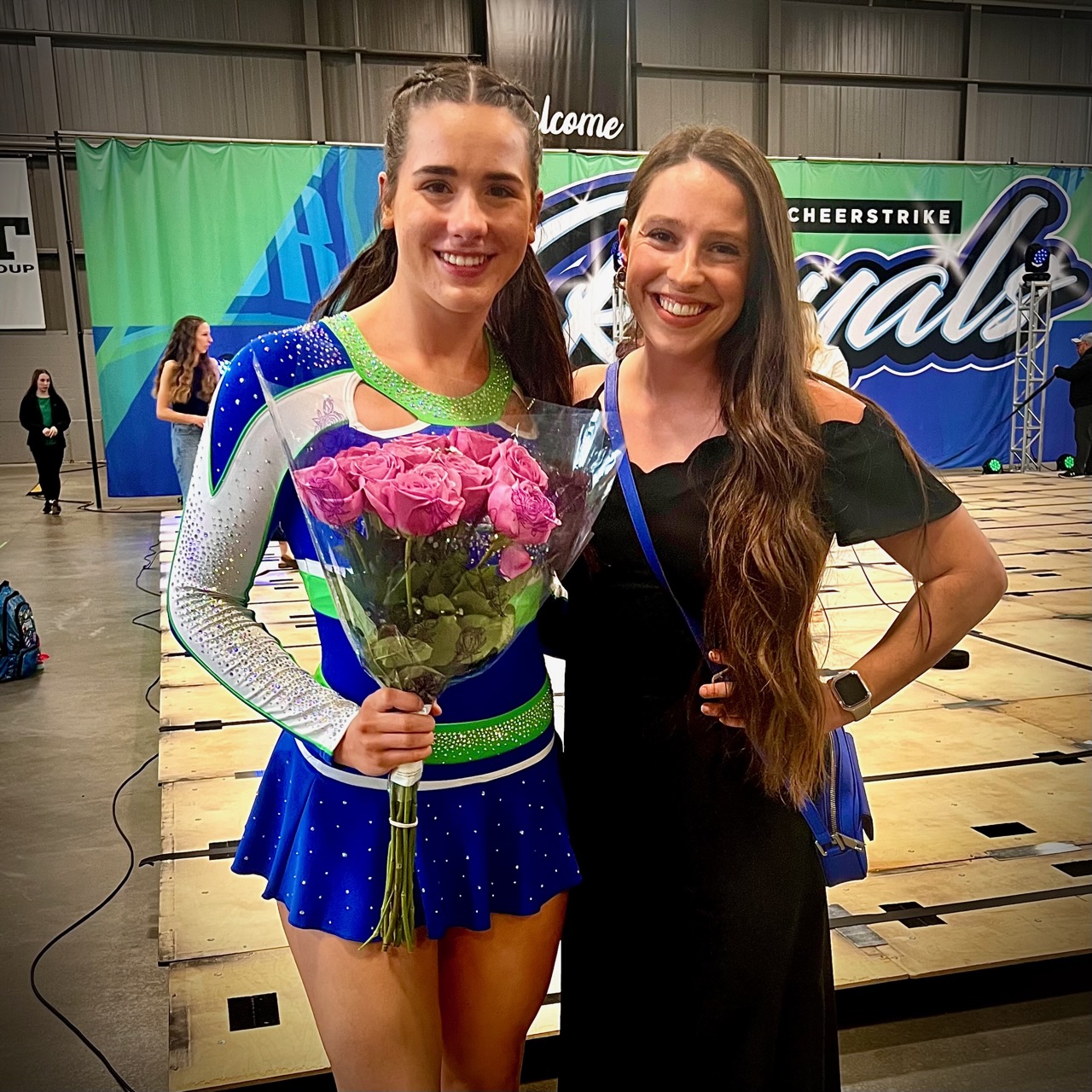 Back to the showcase! This is our first real cheer showcase since joining cheer 3 years ago. The full gym performance showcased all 21 teams routines. Emelia’s best friends Anna, Grace, Carys and Sienna all came to cheer her on. Anna and Grace came last year to the team showcase and were so excited to see it again not only to see Emelia perform but a number of the girls friends from school are on various teams. The girls with flowers in hand came in and were blown away at the performance. They happily hugged Emelia and told her that her team routine was their favourite. She was beaming!