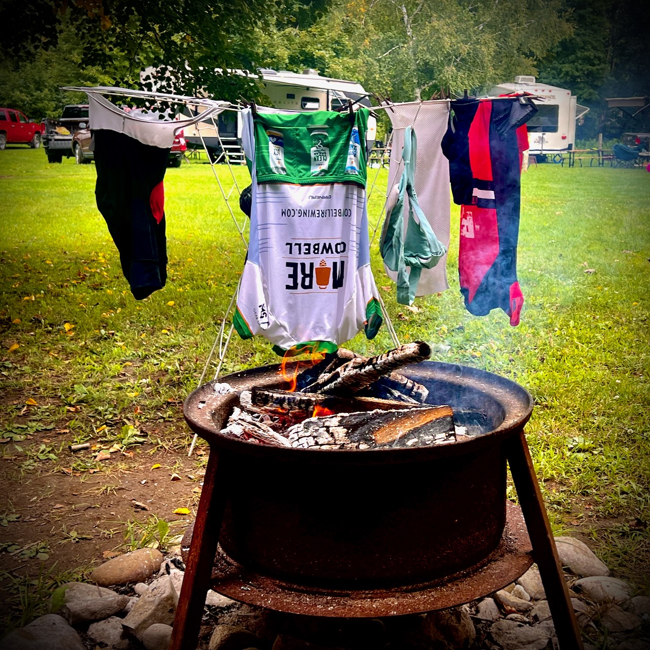 It really was an amazing week. Wednesday, we had an entire of day of rain. We did manage to get a seventy minute refrain that allowed us to get on the bikes and our ride done. As absurd as it sounded to Danielle, I was actually – at one point – considering driving back to London to get on the trainer to get the ride done. Thankfully, it didn’t come to that, but the rest of the day Danielle and I got to do something we hadn’t in a very long time which was be extra lazy and binge watch DVD’s that we have at the trailer for just these sorts of days. It felt so amazing to have what amounted to the laziest day we have had in a long time. We did manage to get a snippet of enjoying the fire pit – going back and forth from at the pit to under the awning. But it was enough, and quite actually ended up being a great day.
