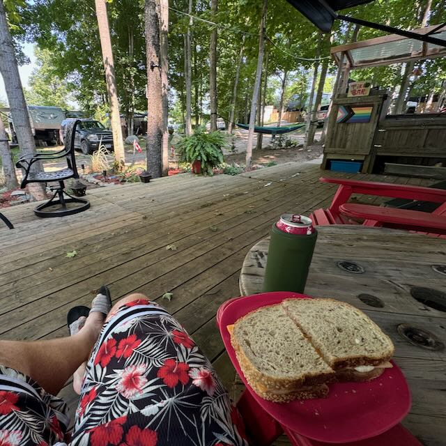 So yes, by 3:30pm yesterday afternoon, I was on the deck at the trailer enjoying a cider and sandwich. Both Danielle had today off work, so the plan all along was as soon as I was done the race and back from Sarnia we would spend the night and today at the trailer. After the week we had of constantly working at clearing out Oakcrossing, it was welcome R&R and time for just Danielle & I to be together. We had an amazing steak dinner and spent the evening relaxing by the fire pit. Today there were no alarm clocks and we enjoyed a slow coffee once we were both awake. After that we got out on the bikes together and took in the G2G for our usual ride together to Blyth & back. The rest of the morning and early afternoon was about taking life at trailer pace before making our way back to London. We popped over to visit Mom and with Matthew & Shawn’s help get her photos up on the wall to make her new home more her home. To hear how happy she is there and how much she is already enjoying it the perfect remedy for all the hard work that it took to get her there. It’s all we needed to hear, and we’ve heard it a lot already!