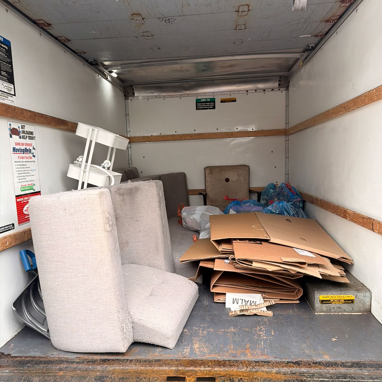 We ended up renting a 10′ moving van from U-Haul which is conveniently just around the corner from us at Miles Variety—the store when Emelia was in grade school would walk over to get candy from. And while it was easier and more convenient when we had the truck, I would not got back from the jeep as it is so much more fnun to drive and still handles 99% of any cargo we need to haul. So, at any rate a week later and longer than Danielle wanted, with a day off work on Wednesday Emelia & I got the porched cleared up of the eyesore collection and dropped of at our city’s enviro depot. I immediately sent Danielle a pic by text and got her appreciative reaction almost instantly. And it all only took a couple of hours.
