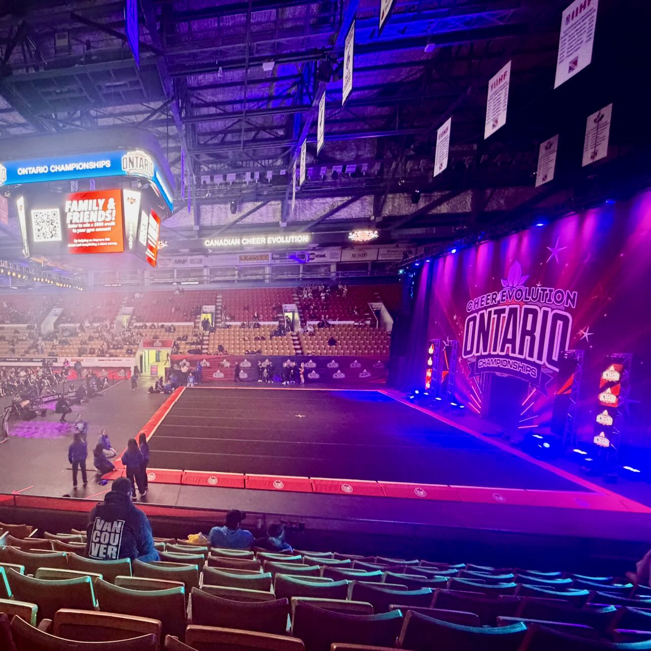 The next big comp on the Cheer season came this week in the Ontario Championships which was a very big one as it was the largest contingent of Worlds Bids teams. Thankfully, Valiant already had their bid out of the way so that took a lot of the stress off the girls because the competition this weekend was likely to be fierce and full. The CS Silky Sharks who came in second at Worlds in their division last year were there, as well as a contingent of other very competitive teams. So the competition was going to be deep and deliberate about gaining some bids. And the girls expectations going into this, was realistic to say the least.